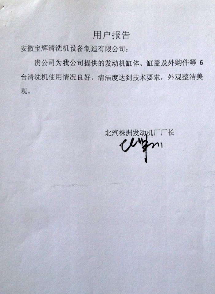 關(guān)鍵詞:北汽株洲發(fā)動機廠用戶報告  發(fā)布日期:2015-03-05  來源:安徽寶輝清洗設(shè)備制造有限公司