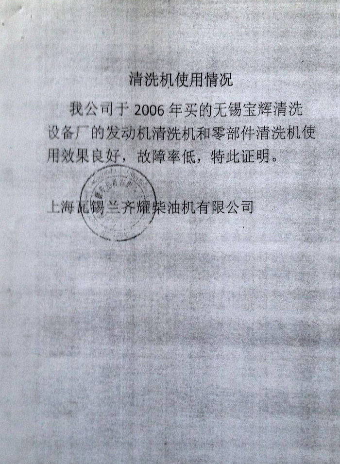 上海瓦錫蘭齊耀柴油機有限公司用戶報告