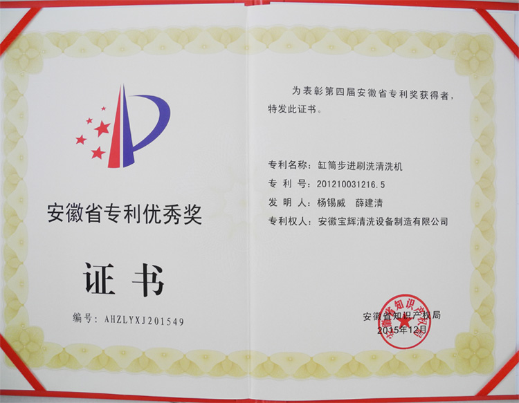 關(guān)鍵詞:安徽省專利優(yōu)秀獎(jiǎng)證書(shū)  發(fā)布日期:2017-08-17  來(lái)源:安徽寶輝清洗設(shè)備制造有限公司